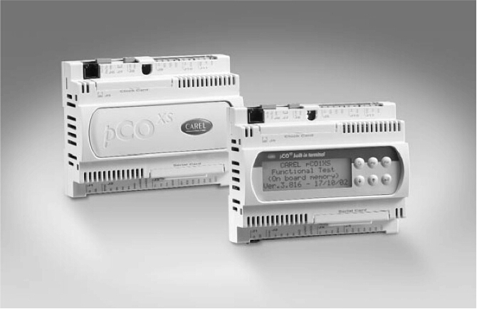 pCOxs控制器,配置了运行应用程序用的16位微处理器,和需要连接变压器的设置手操器和控制设备(阀,压缩机,风机)。程序和参数被永久地保存在闪存存储器里,防止当掉电事件(没有备用电池)发生时数据丢失。用一系列的pCOxs主板和手操器,pCOxs也被允许连接成pLAN网络。每一个主板都能用最高的传输速度交换信息(任何变量,开关量和模拟量根据应用程序)。最多可以连接32个机组,在最短的时间内分享信息。据RS485通讯标准,使用可选RS48串行卡(PCOXS4850)和CAREL或ModBus的通讯协议,连接到监视器和远距离维护设备。