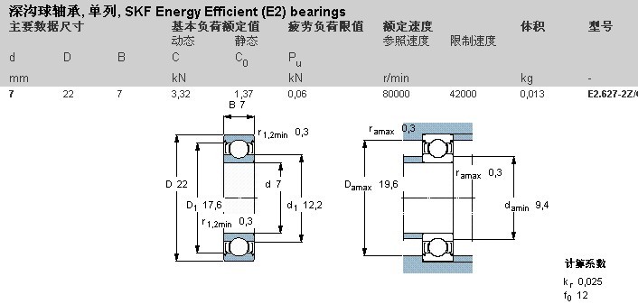 斯凯孚SKF Energy Efficient (E2) bearings轴承E2.627-2Z-C3