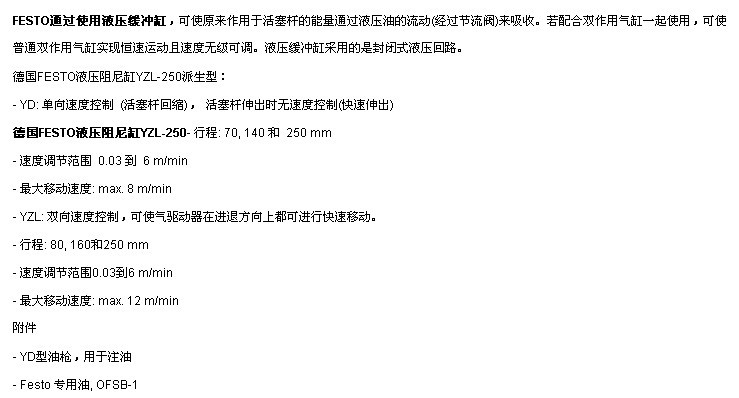 费斯托 FESTO 液压阻尼缸 YZL系列