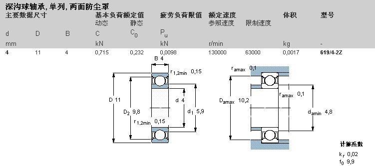 瑞典斯凯孚SKF 619-4-2Z 单列深沟球轴承