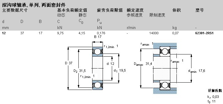 ■温馨提示:以上是广州丙通关于 瑞士斯凯孚SKF62301-2RS1单列深沟球轴承 的信息,更多关于相关产品的型号、性能参数、价格的信息,请致电!