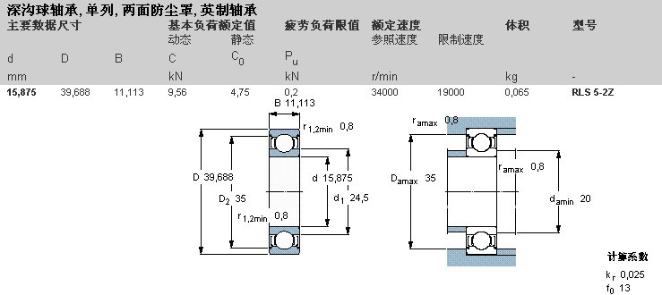 瑞典斯凯孚SKFRLS5-2Z单列深沟球轴承