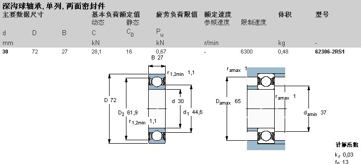 瑞典斯凯孚SKF62306-2RS1单列深沟球轴承
