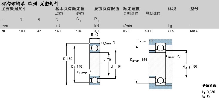 ■温馨提示:以上是广州丙通关于 瑞士斯凯孚SKF6414单列深沟球轴承 的信息,更多关于相关产品的型号、性能参数、价格的信息,欢迎致电咨询!
