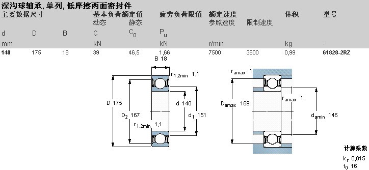 瑞典斯凯孚61828-2RZ单列深沟球轴承
