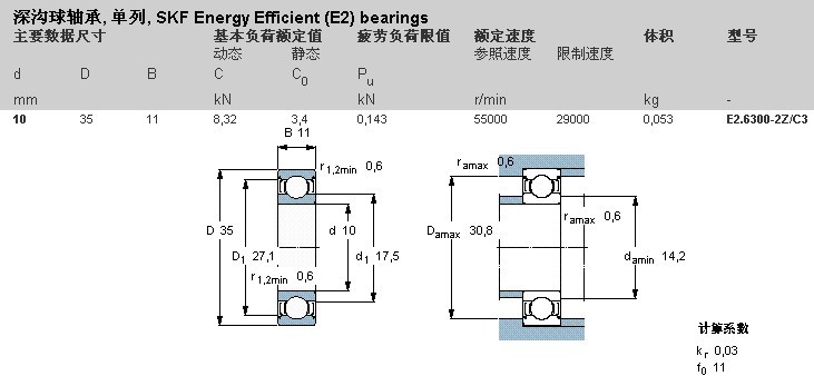 斯凯孚SKF Energy Efficient (E2) bearings轴承E2.6300-2Z-C3