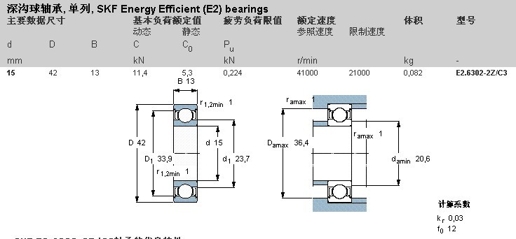 斯凯孚SKF Energy Efficient (E2) bearings轴承E2.6302-2Z-C3