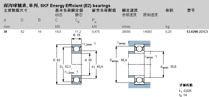 斯凯孚SKF Energy Efficient (E2) bearings轴承E2.6206-2Z-C3