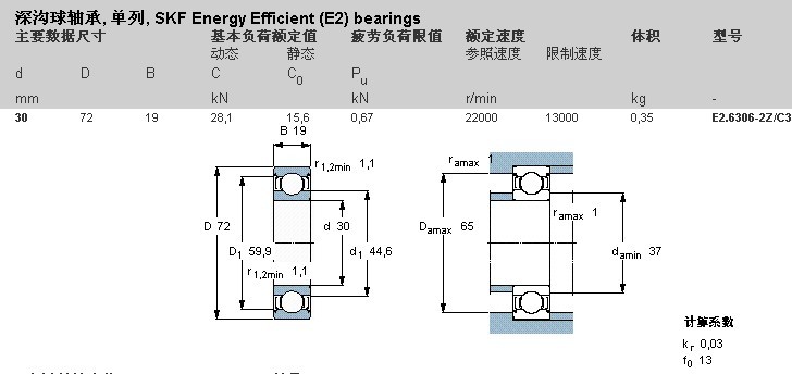 斯凯孚SKF Energy Efficient (E2) bearings轴承 E2.6306-2Z-C3